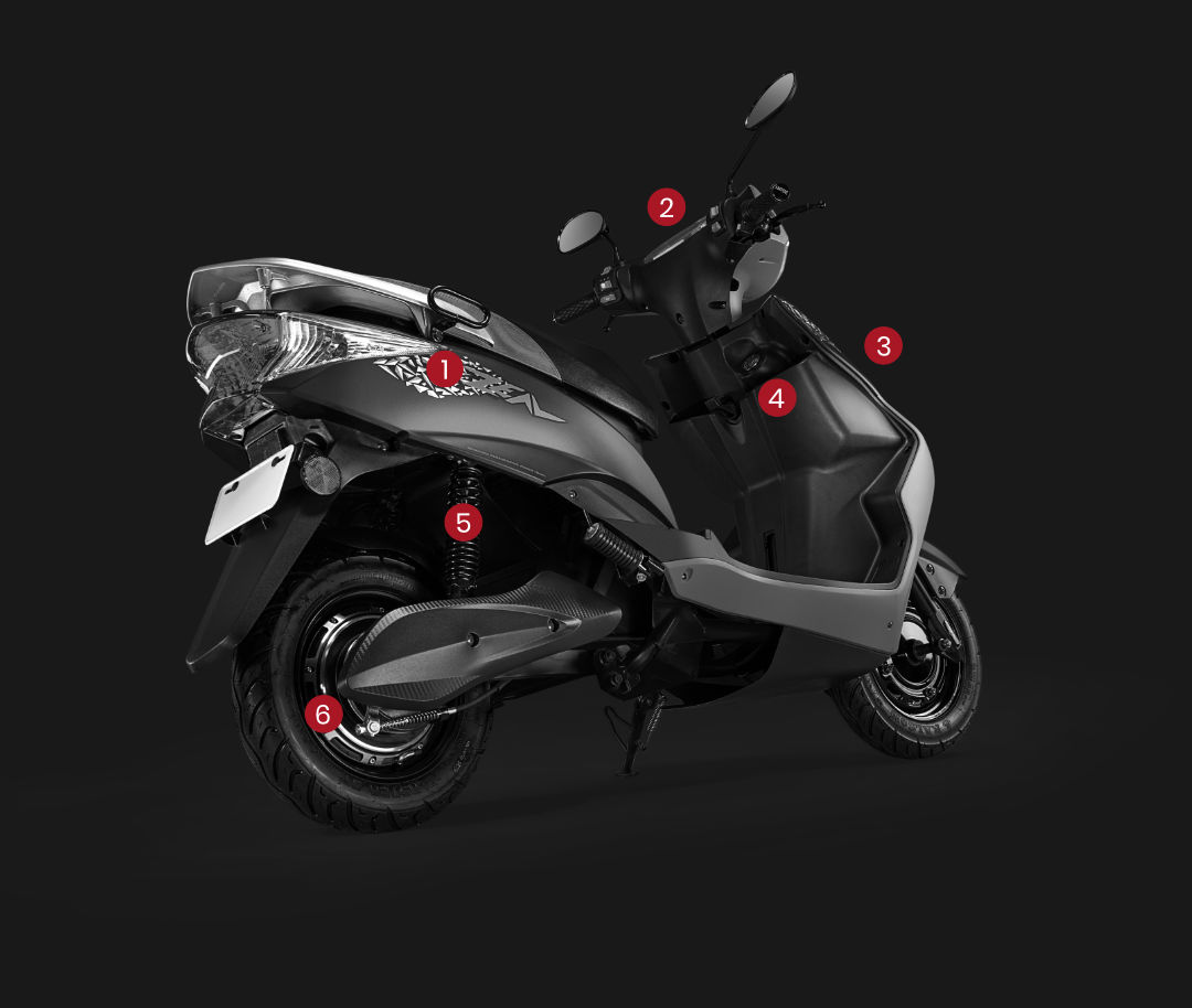 A sleek design meets functional handling with the Zeal e-scooter. Nearly 30 kg lighter than conventional two-wheelers, Zeal gives you an amped-up riding experience that’s stylish and comfortable.